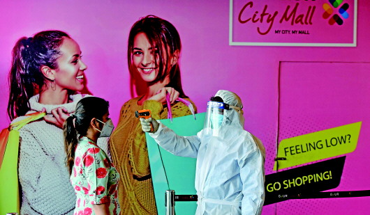 6月9日,在印度大诺伊达地区,进入商场的人接受体温检测。印度中央政府从8日开始正式允许餐馆、购物中心和宗教场所对民众开放,这也是印度分阶段放松管控的第一步。 新华社发(帕塔·萨卡尔摄)