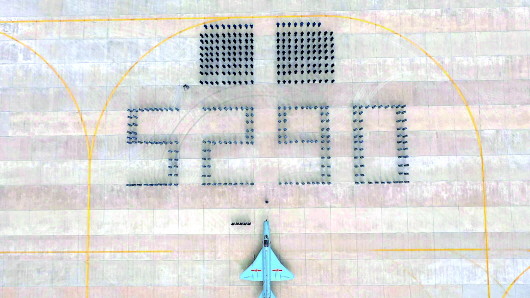 图1:停飞仪式上,官兵们摆成5290的数字向王文常致敬(5月25日摄)。