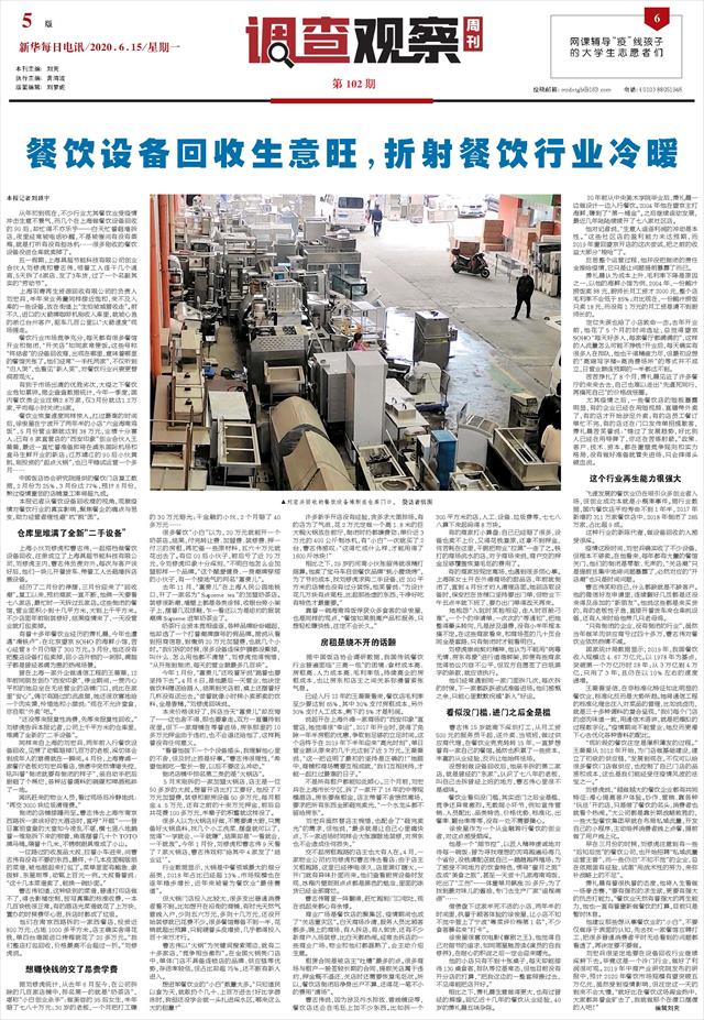 本报记者从餐饮设备回收商的视角,观察疫情对餐饮行业的真实影响,聚焦餐企的痛点与思变,助力经营者理性避“坑”脱“困”。