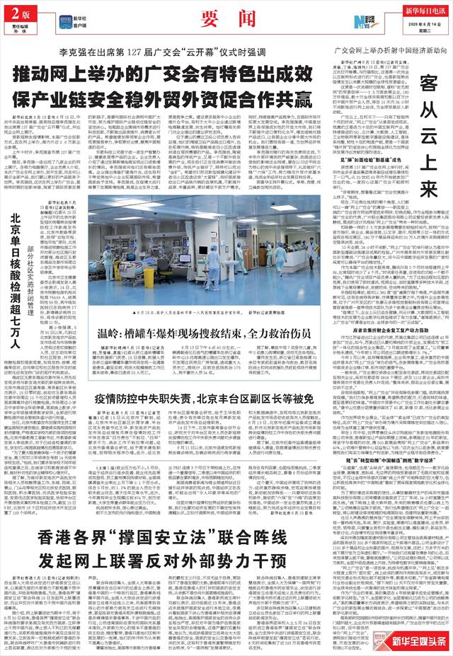 | ( 2020-06-16 ) 稿件来源:新华每日电讯 要 闻 |