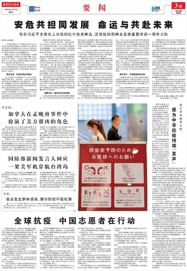 | ( 2020-06-16 ) 稿件来源:新华每日电讯 要 闻 |