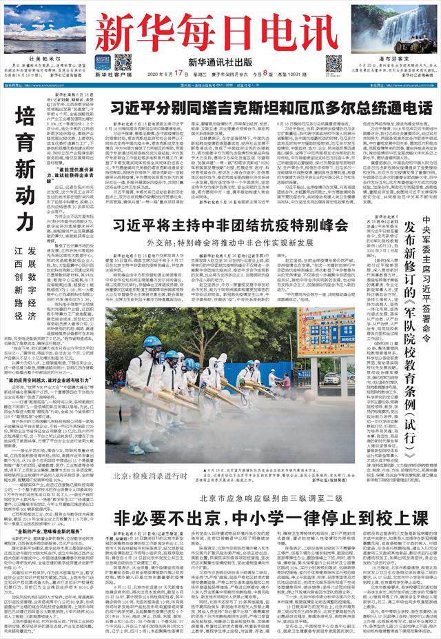 | ( 2020-06-17 ) 稿件来源:新华每日电讯 要 闻 |
