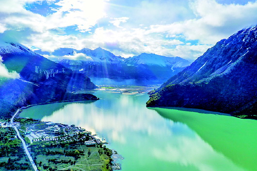 位于昌都市八宿县境内318国道旁的然乌湖(6月7日摄)。昌都市位于西藏东部,风景秀美壮丽。 新华社记者田金文摄