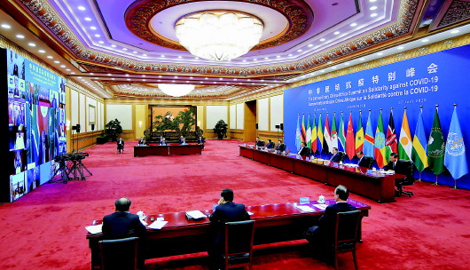 ▲6月17日晚,国家主席习近平在北京主持中非团结抗疫特别峰会并发表题为《团结抗疫 共克时艰》的主旨讲话。 新华社记者丁海涛摄 |