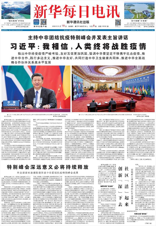 | ( 2020-06-18 ) 稿件来源:新华每日电讯 要 闻 |