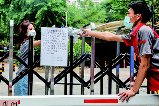 ▲6月17日,快递员在北京市西城区广外街道朗琴园社区外为一位居民递送包裹。