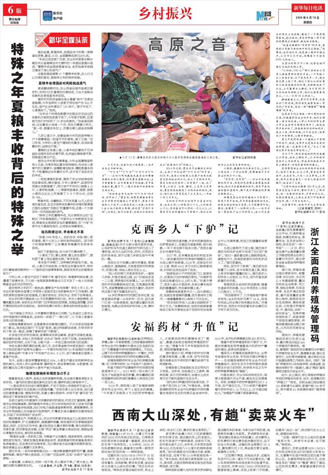 | ( 2020-06-18 ) 稿件来源:新华每日电讯 乡村振兴 |