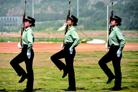“我们训练的时候,风吹日晒雨淋都是家常便饭,可是我觉得还是白一点好看,所以我一个月大概要用掉五六瓶防晒喷雾。”她说,“今天,我们爱武装,也可以爱红装。”