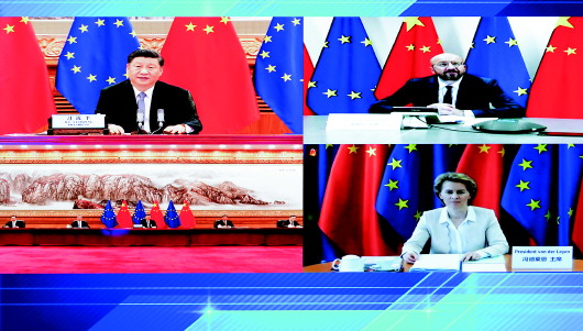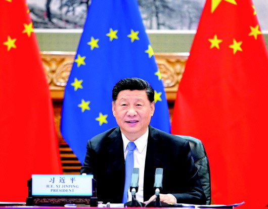 习近平指出,新冠肺炎疫情发生以来,中国和欧盟相互支持、相互帮助。中方愿同欧方携手努力,推动“后疫情时代”中欧关系更加稳健成熟,迈向更高水平。