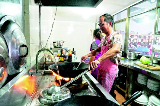厦门市同安区莲花镇军营村村民高水银在自己开办的农家乐准备游客的午餐。(新华社资料片)