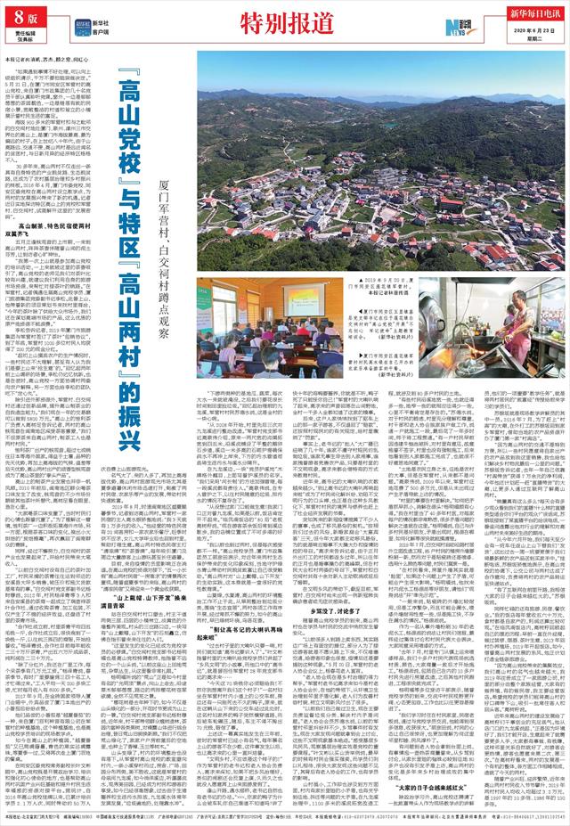 30多年来,高山两村不仅走出一条具有自身特色的产业脱贫路、生态脱贫路,还成为了农村基层治理和乡村振兴的样板。2016年4月,厦门市委党校、同安区委党校在高山两村设立教学点,为两村的发展振兴带来了新的机遇。记者近日实地探访特区高山上的党校和军营村、白交祠村,试图解开这里的“发展密码”。