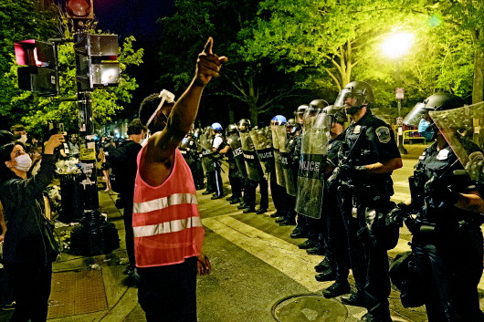 6月22日,警察和示威者在美国华盛顿白宫附近对峙。