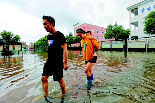 记者在六安市裕安区西河口乡初级中学看到,校园内到处是积水,部分地段积水深半米左右。由于当地连遭强降雨,加之上游水库泄洪,西河口乡内涝,部分群众房屋进水,需要转移安置,学校成了受灾群众临时安置点。