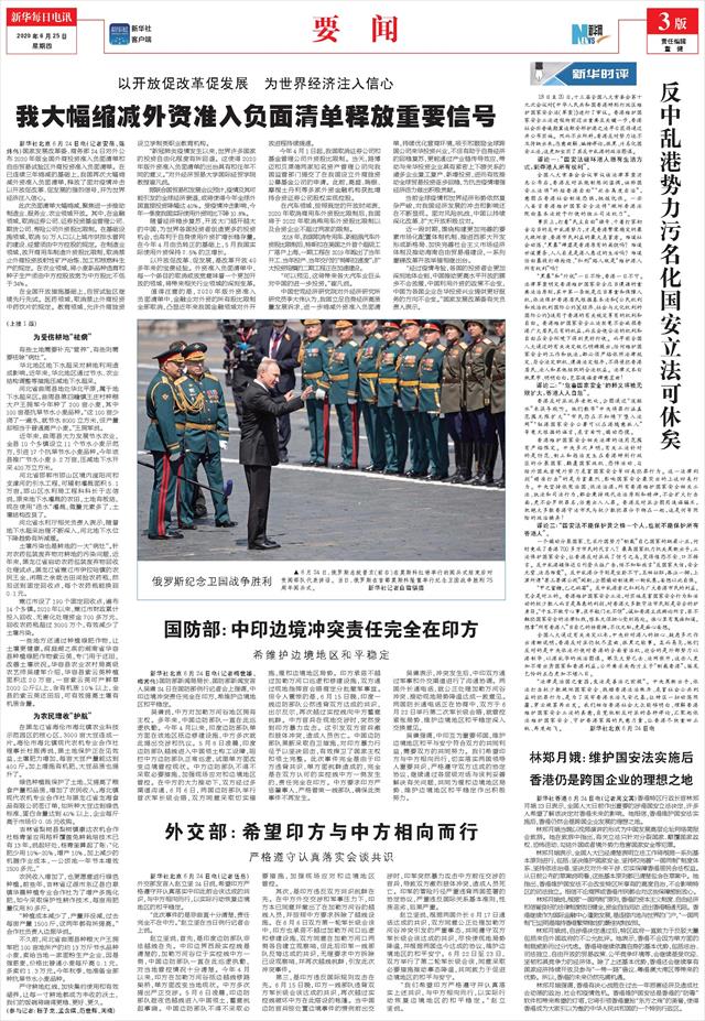 | ( 2020-06-25 ) 稿件来源:新华每日电讯 要 闻 |