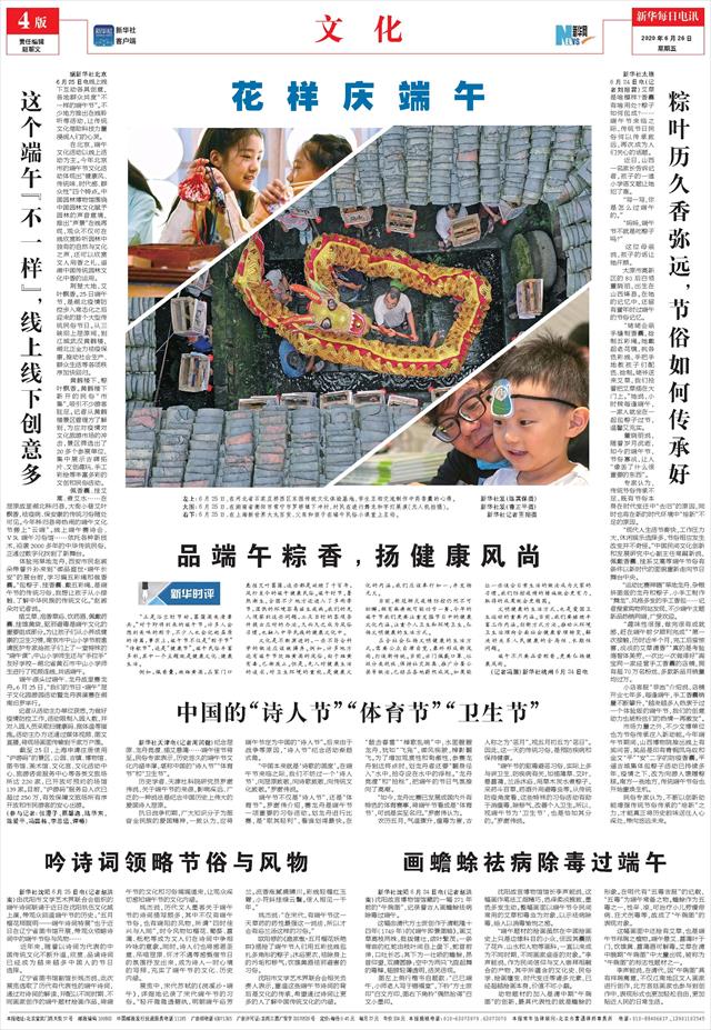 “端午节的驱毒避恶习俗,实际上多与讲卫生、防疾病有关,如插蒲草、艾叶,悬菖蒲,兰汤沐浴,用草木灰水煮粽子,采药斗百草,药酒外用避毒虫等。从传统防疫角度看,这些特殊的习俗活动有助于消瘟毒,除秽气,改善个人卫生。所以,视端午节为‘卫生节’,也是恰如其分的。”罗澍伟说。