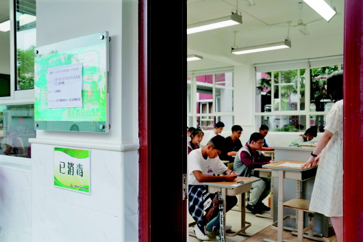 当日,2020年上海市初中毕业统一学业考试开考。上海市各考点落实多项措施,筑牢防疫“安全墙”。考生需提前签署《考生考试安全承诺书》,进出考点考场须佩戴口罩,并接受防疫安全检查。 新华社记者刘颖摄