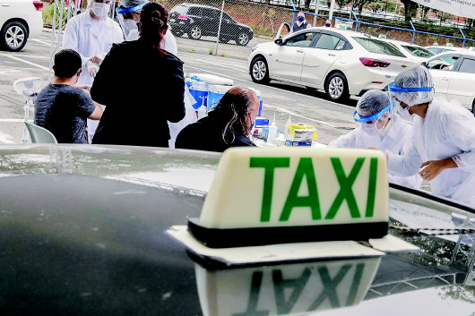 ▲6月26日,巴西圣保罗市的出租车司机接受新冠病毒快速检测。