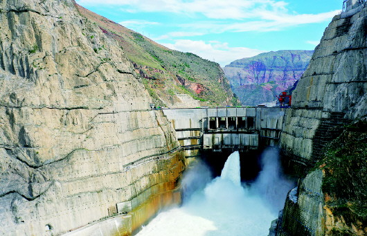 这是6月29日无人机拍摄的乌东德水电站大坝。当日,乌东德水电站首批机组投产发电仪式举行。 新华社记者李梦馨摄