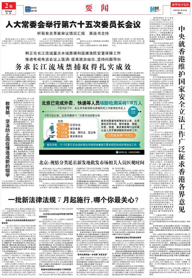 | ( 2020-06-30 ) 稿件来源:新华每日电讯 要 闻 |