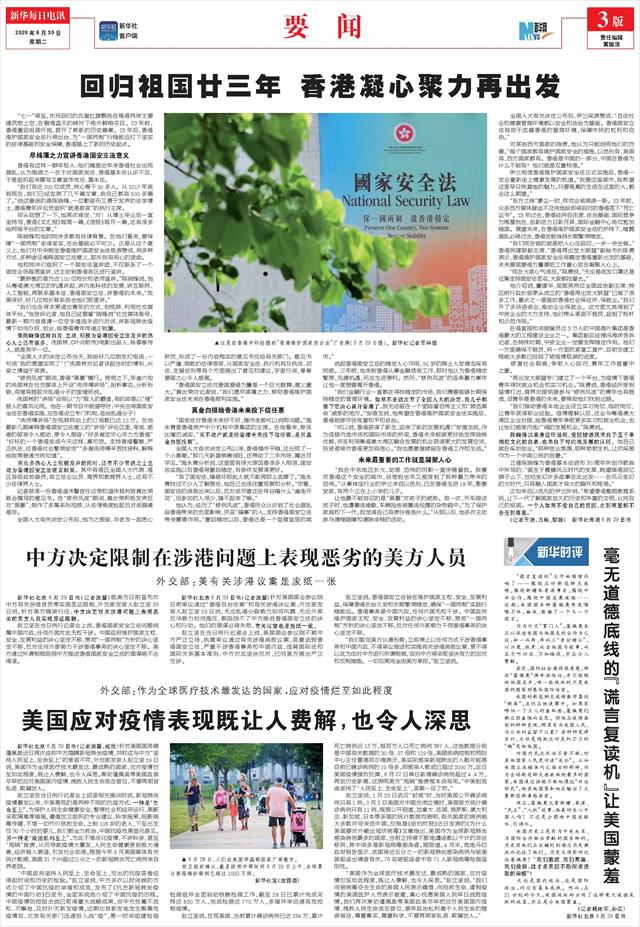 | ( 2020-06-30 ) 稿件来源:新华每日电讯 要 闻 |