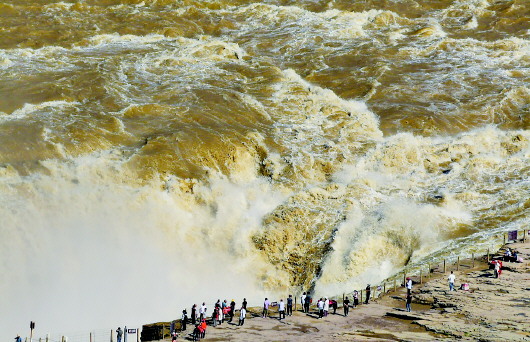 受近期上游降雨增多影响,黄河干流进入汛期,壶口瀑布主副瀑布连成一线,再现壮美瀑布群。 新华社发(吕桂明摄)