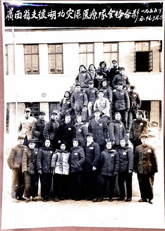 据资料记载,1954年8月,当时的广西省卫生厅组织灾区医疗队,赴湖北省支援防汛工作。医疗队由卫生厅直属医疗、防疫单位和桂林、柳州两市的医疗、防疫、妇幼保健、红十字会等机构的医务人员共30人组成,参加洪湖、石首等地的防病治病工作,历时5个月。