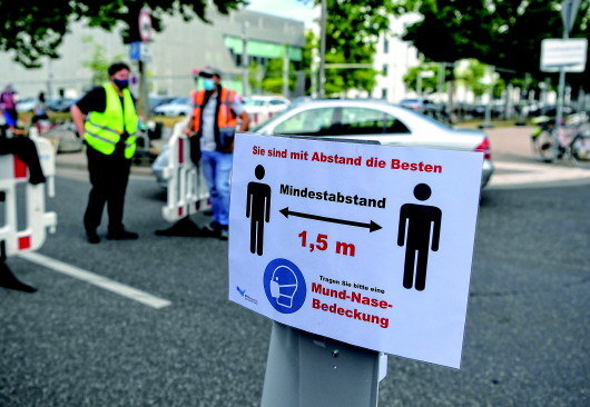 ▲这是7月4日在德国法兰克福的“跳蚤市场”入口处拍摄的提醒民众保持社交距离的警示牌。当日,受新冠疫情影响而关闭的德国法兰克福二手货交易市场重新向民众开放。市场管理部门采取限制入场人数、场内人员佩戴口罩等一系列措施,确保防疫安全。