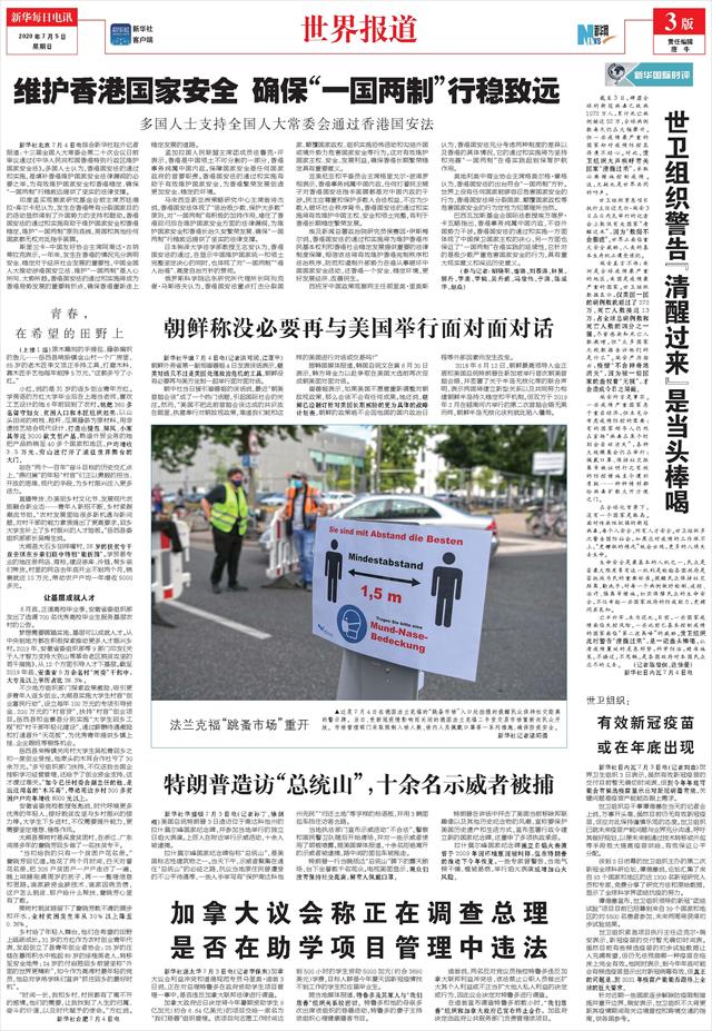 | ( 2020-07-05 ) 稿件来源:新华每日电讯 世界报道 |