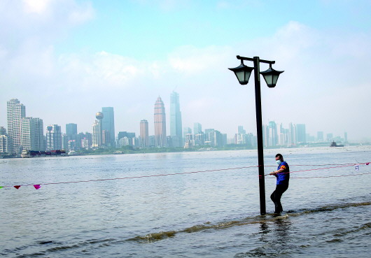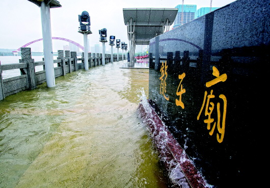 7月6日,武汉龙王庙观江平台被上涨的江水淹没。新华社记者肖艺九摄