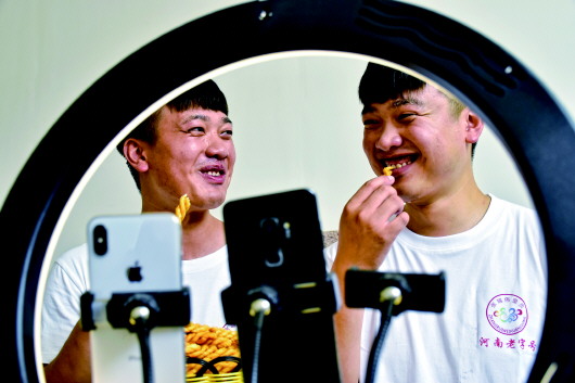 7月8日,张亚博(左)、张亚钊兄弟在直播带货。
