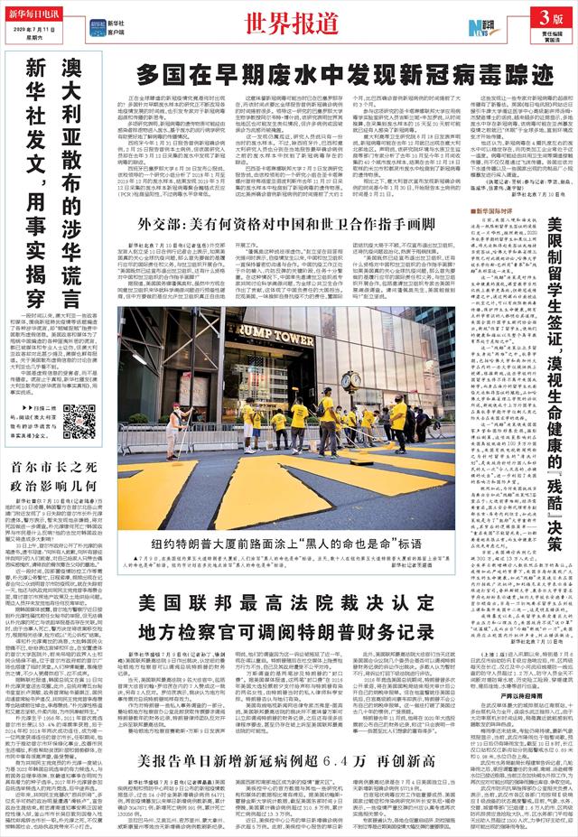 | ( 2020-07-11 ) 稿件来源:新华每日电讯 世界报道 |