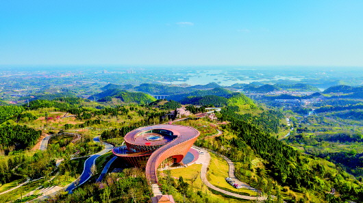 图为龙泉山城市森林公园丹景台,又称为“城市之眼”,成都“东进”的地标式建筑。