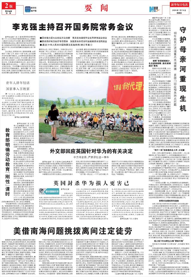 | ( 2020-07-16 ) 稿件来源:新华每日电讯 要 闻 |