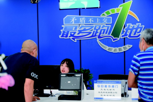 ▲7月16日,群众在诸暨市社会矛盾纠纷调处化解中心综合受理窗口咨询。在“枫桥经验”的发源地浙江省诸暨市,当地积极推动县级社会矛盾纠纷调处化解中心建设,基本实现部门“应入尽入”,使老百姓遇到问题能进中心“找个说法”。目前,诸暨市社会矛盾纠纷调处化解中心已入驻11个部门涉21项职能,实现信访整体入驻、公检法司常驻、社会组织共驻。