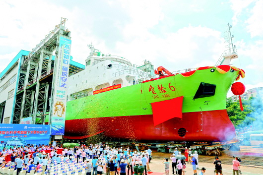 “实验6”号新型地球物理综合科学考察船18日在广州下水,预计明年投入使用,将为海洋科学以及深海大洋区的极端环境研究提供先进的海上移动实验室和探测装备试验平台。新华社记者黄国保摄