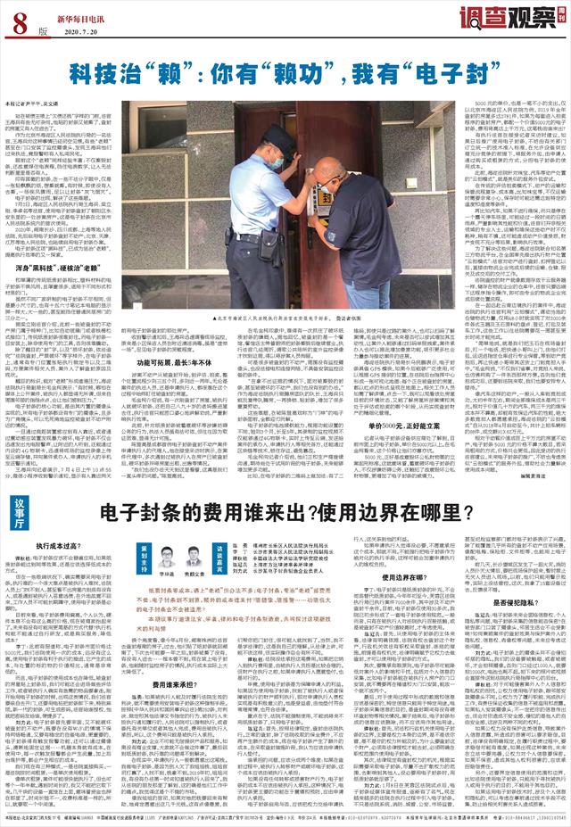 李丁:此前有报道称,电子封条市面价格达5000元。我们法院使用一次的成本,远没有这么高。使用电子封条有利于执行的推进,它产生的成本,与处置的标的物的价值相比,通常是非常低的。