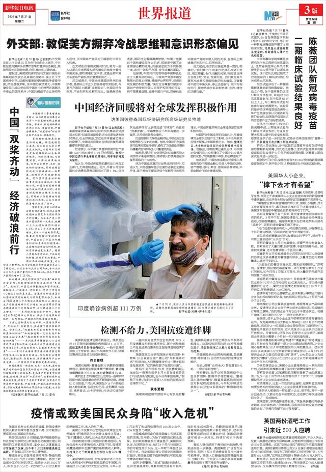 | ( 2020-07-21 ) 稿件来源:新华每日电讯 世界报道 |