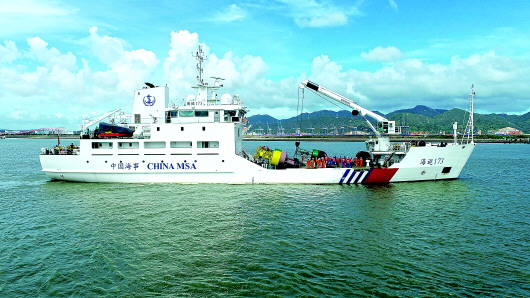 “海巡173轮”7月22日正式列编交通运输部南海航海保障中心广州航标处。这艘排水量2228吨的大型航标工作船是中国交通运输系统南海海区装备最先进的船,将用于粤港澳大湾区和南海海区水上浮标的布设和维护。 新华社发