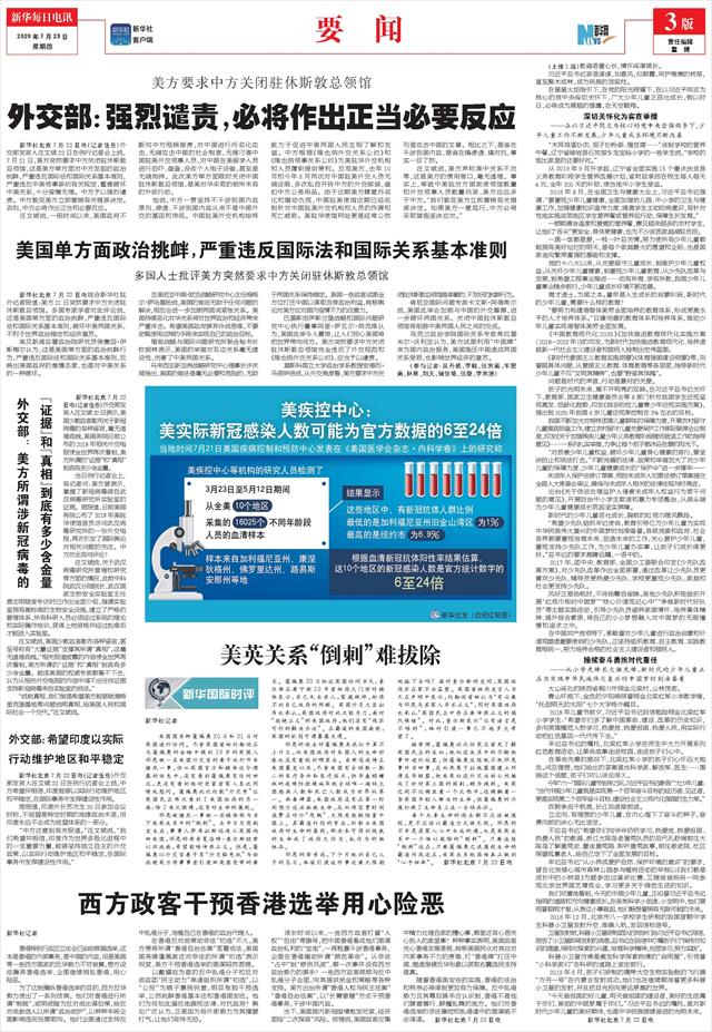| ( 2020-07-23 ) 稿件来源:新华每日电讯 要 闻 |