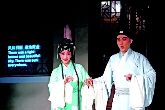 ▲昆曲演员沈国芳(左)、张争耀演出新编昆曲《浮生六记》园林版。新华社记者李响摄