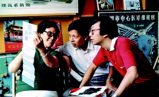 1984年,罗小未(左一)指导研究生做科研。 图片由同济大学提供