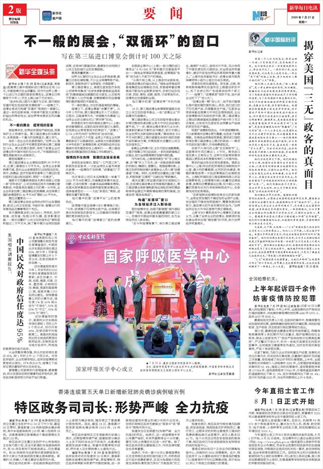 ( 2020-07-27 ) 稿件来源:新华每日电讯 要 闻