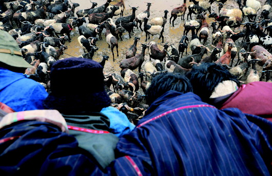 7月25日,牧民在千羊崖辨认走失的牛羊。