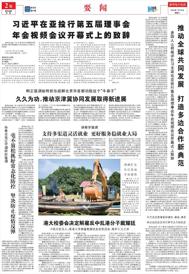 | ( 2020-07-29 ) 稿件来源:新华每日电讯 要 闻 |