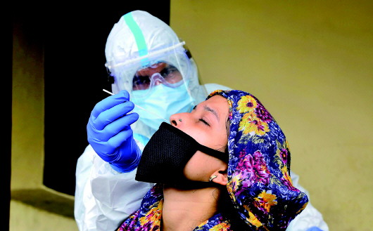 ▲7月29日,一名女子在印度新德里接受新冠病毒检测采样。印度卫生部29日公布的数据显示,过去24小时印度新增新冠确诊病例48513例,累计确诊1531669例。 新华社发(帕塔·萨卡尔摄)