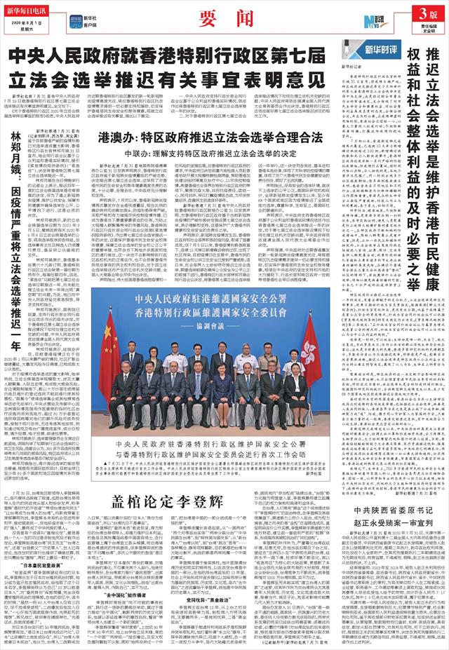 | ( 2020-08-01 ) 稿件来源:新华每日电讯 要 闻 |