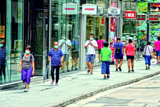 8月1日拍摄的香港铜锣湾街道上的行人。 新华社记者卢炳辉摄 |