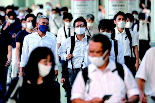 7月31日,在日本东京,人们戴口罩出行。据日本广播协会电视台统计,截至8月3日20时30分(北京时间19时30分),当天日本全国新增新冠确诊病例955例,此前已连续5天单日新增病例超过1000例,累计确诊病例达40212例。日本国内确诊病例从1万增加到2万用了80天,从2万增加到3万用了19天,而从3万增加到4万仅用了8天。新华社记者杜潇逸摄