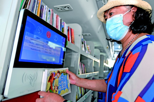 8月5日,长春市民在“流动图书馆”里自助办理图书借阅。 新华社记者许畅摄