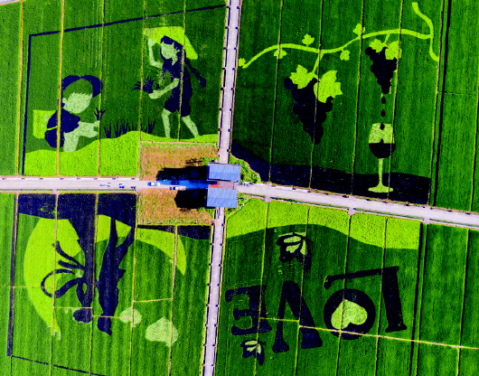 近年来,杭州富阳区东洲街道积极推动美丽田园建设,8月中旬,红旗村的300亩“艺术稻田”里的水稻画进入最佳观赏期。新华社记者徐昱摄
